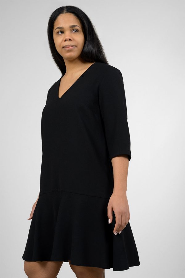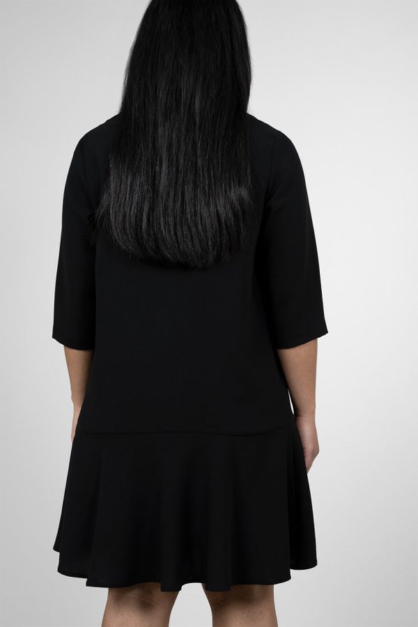 Schwarzes, kurzes Kleid mit glockigem Volant.