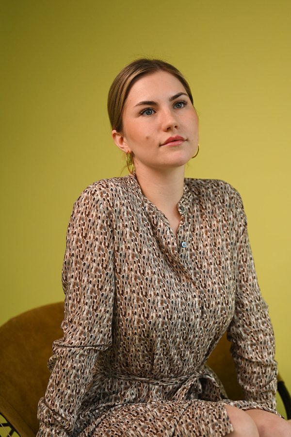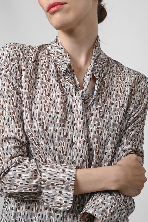 Gemustertes Hemdblusenkleid aus Viskose mit Gürtel.
