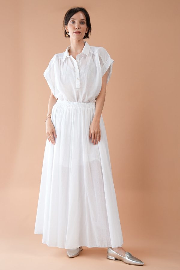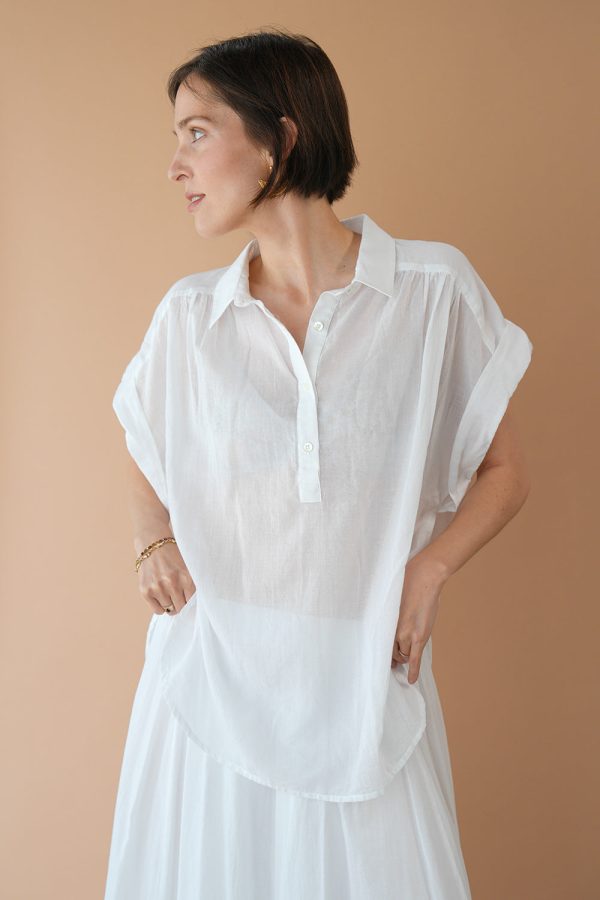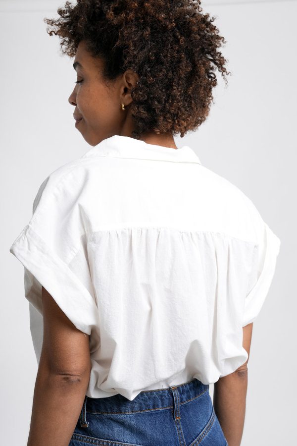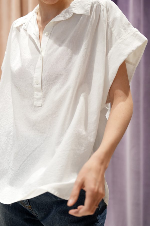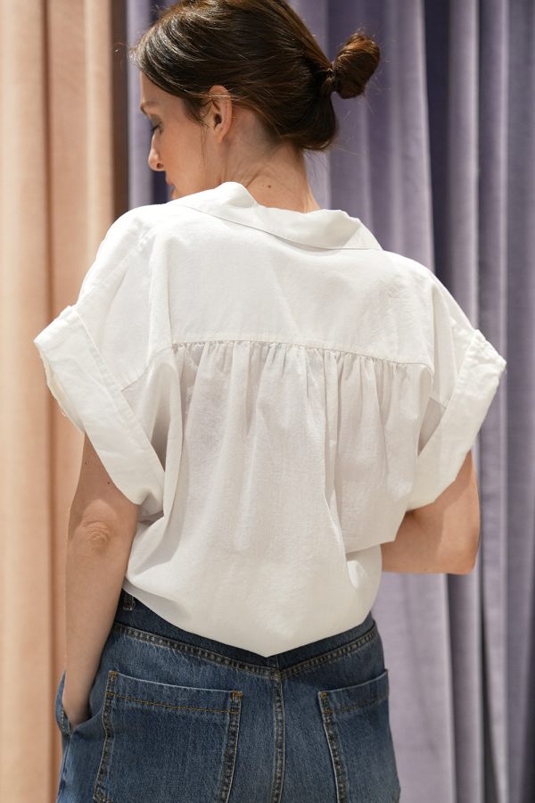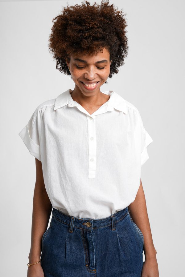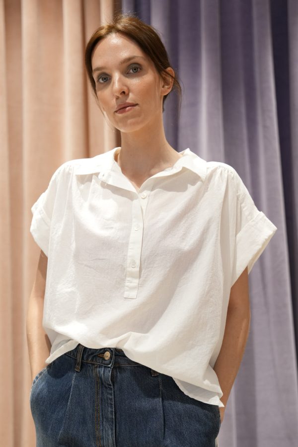 Cremeweiße, leichte Bluse aus Baumwolle-Voile.