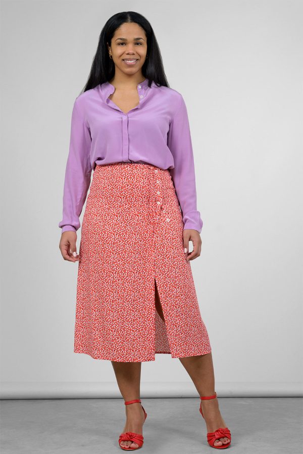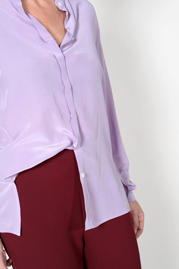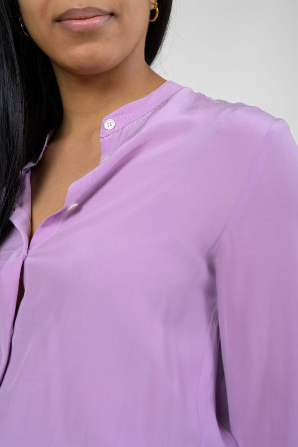 Klassische, gerade geschnittene Seidenbluse mit Stehkragen.