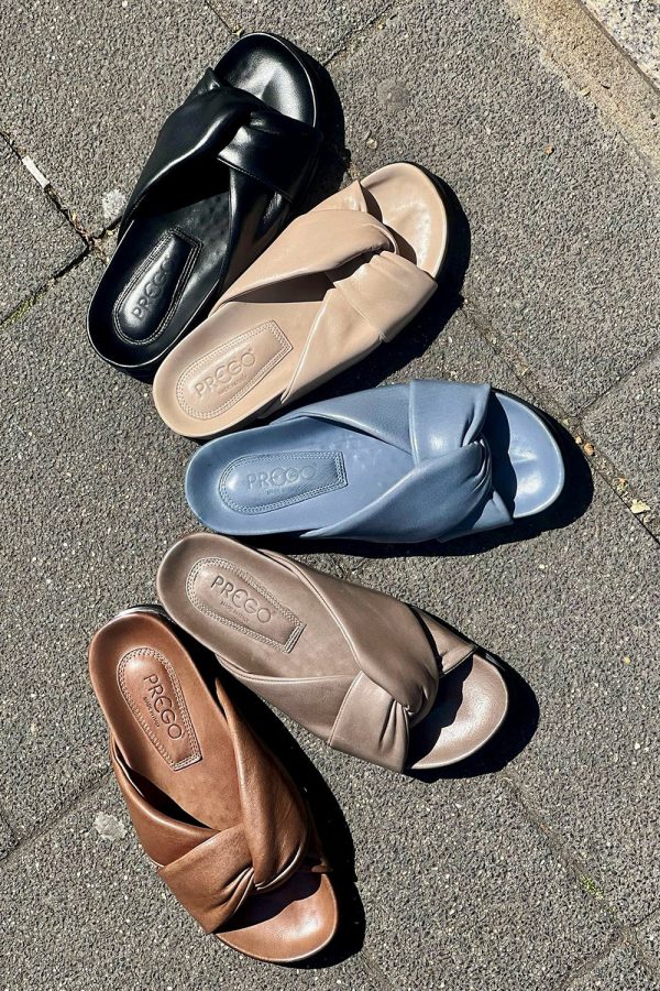 Moderne Schlappe in hellem beige aus Nappaleder mit überkreuztem Design.
