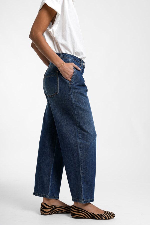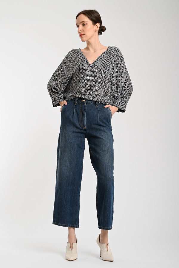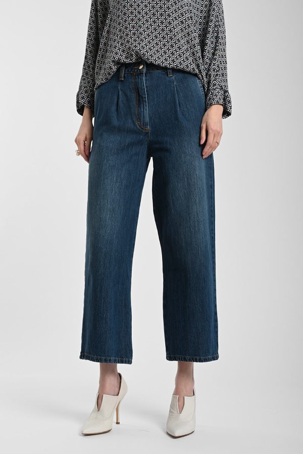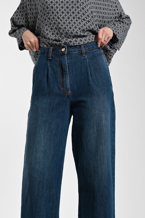 Moderne, lockere Jeans mit Bundfalten in mittelblauer Waschung.