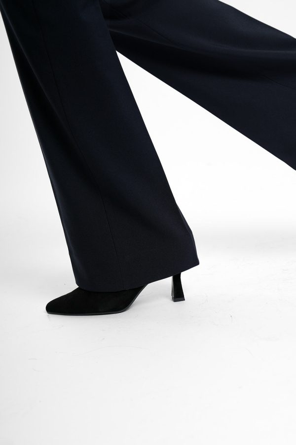 Schwarze, spitze Stiefelette aus weichem Veloursleder.