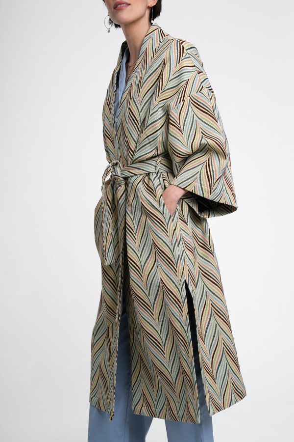 Gemusterter Mantel im Kimono-Style mit Gürtel.