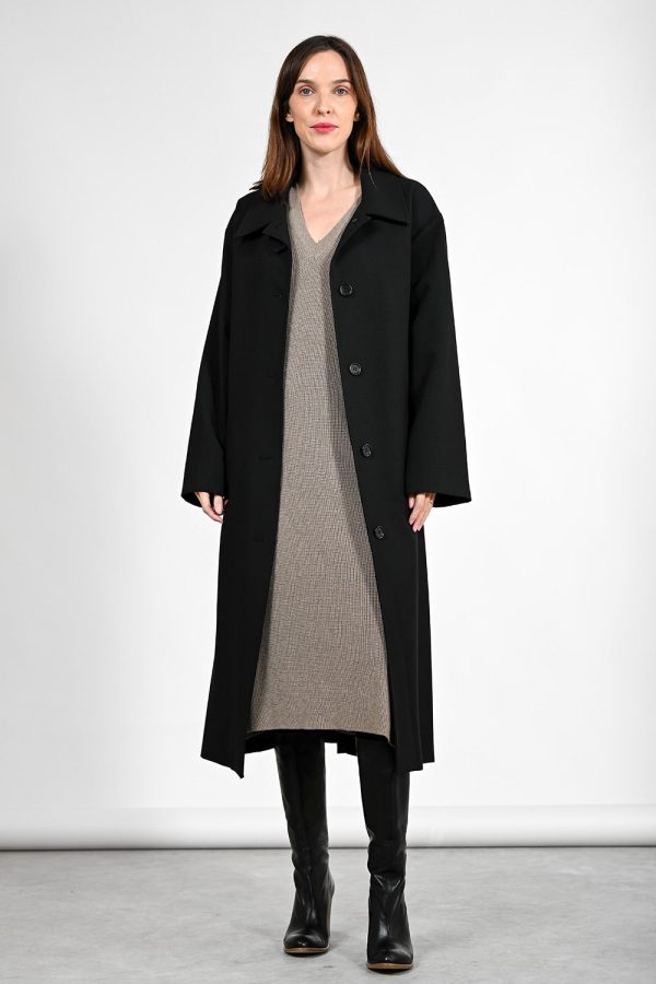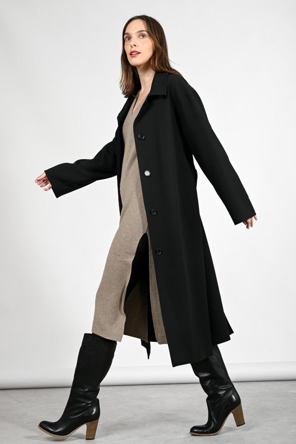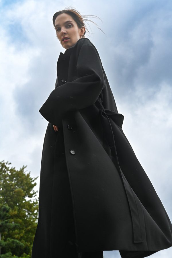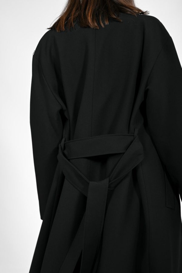 Zeitloser Oversize-Mantel in Schwarz mit praktischem Gürtel für einen perfekt taillierten Look.