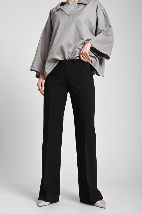 Schwarze Hose mit ausgestelltem Bein aus weichem Viskose-Mix.