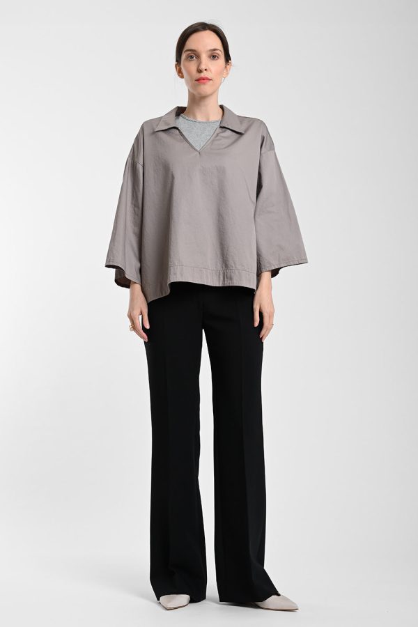 Schließt vorne durch verdeckten Reißverschluss und Knopf