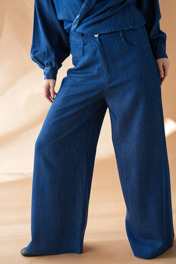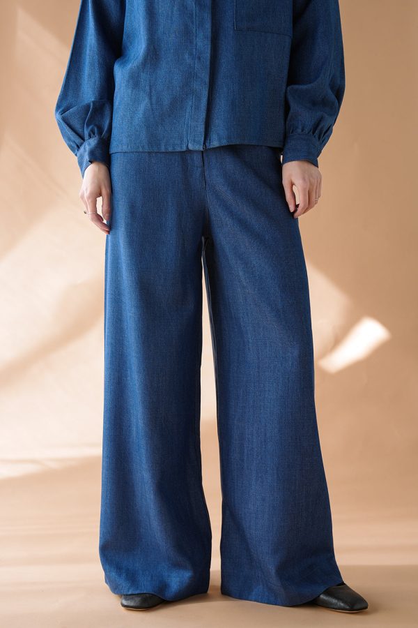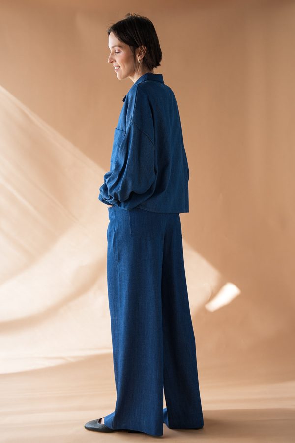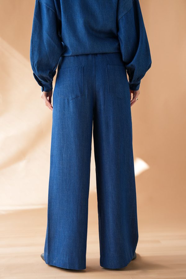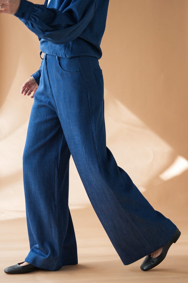 Weite Hose aus leichtem Tencel in Jeansblau.