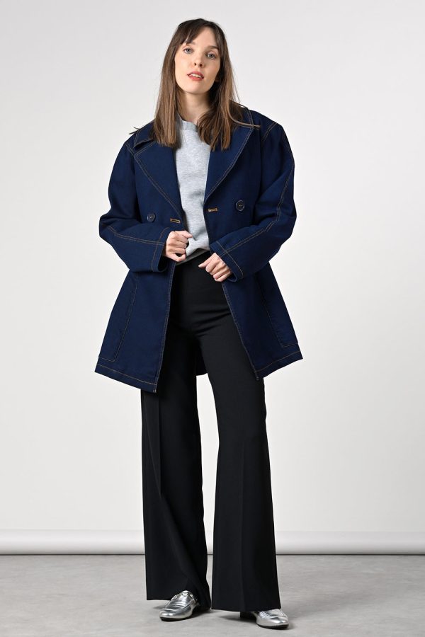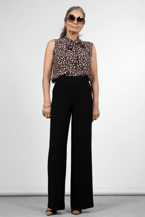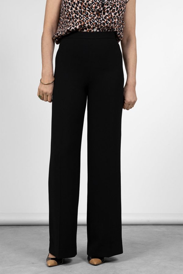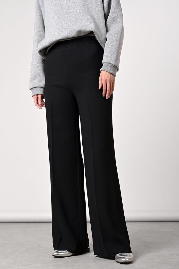 Hoch geschnittene Krepp-Hose mit weitem Bein.