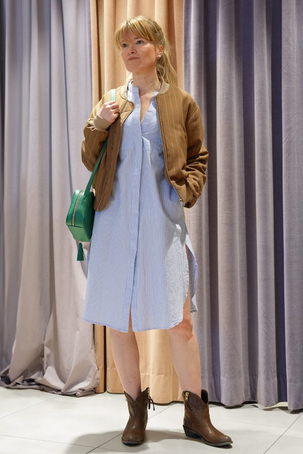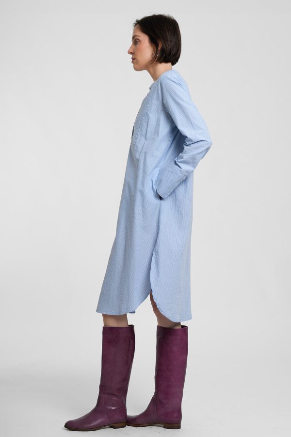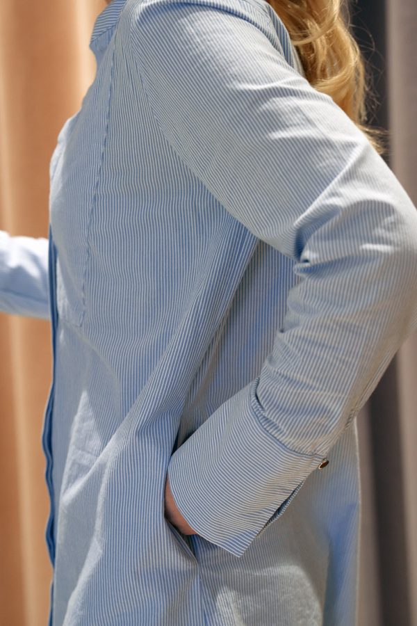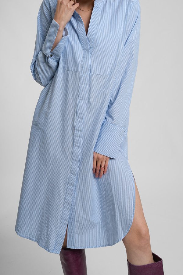Hemdblusenkleid in klassischer Blau-Weiß-Optik aus angenehm weicher, gewaschener Baumwolle für optimalen Tragekomfort.