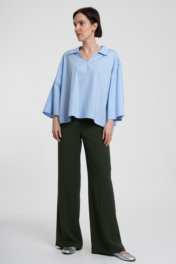 Elegante Damenhose in rauchigem Grün aus hochwertigem Krepp-Georgette mit moderner weiter Beinform für optimalen Tragekomfort.
