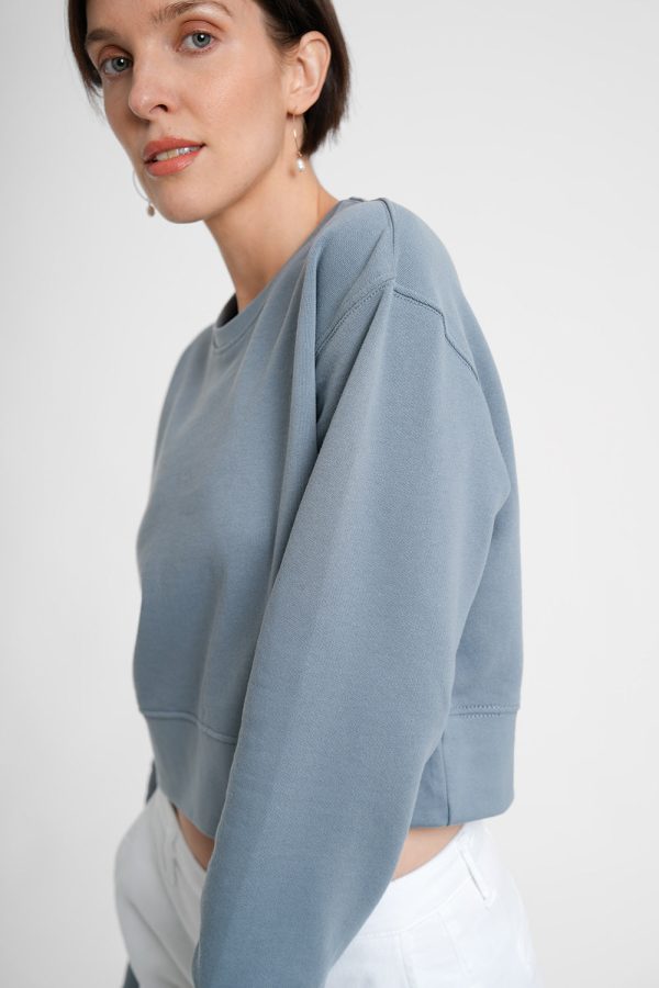Kurzes Sweatshirt in ansprechendem Taubenblau aus hochwertigem, weichem Jersey mit stabilen Bündchen für optimalen Sitz.