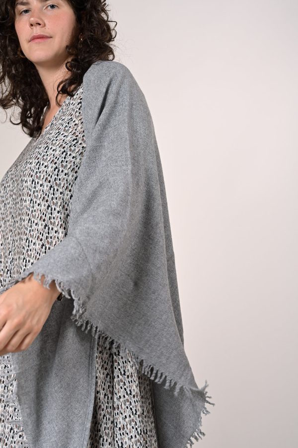 Hellgraue Stola aus Kaschmir und Wolle.
