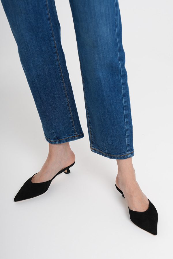 Spitze Mules aus weichem Wildleder in Schwarz.