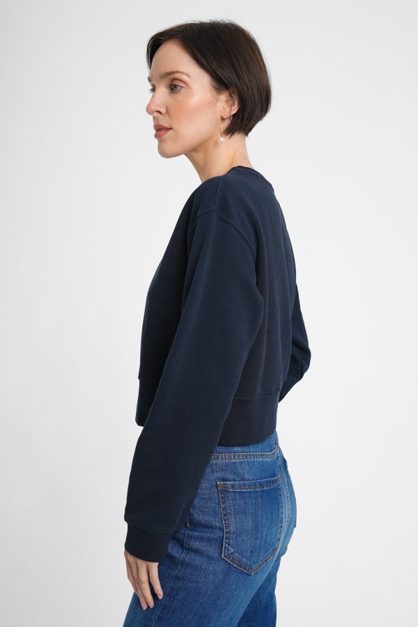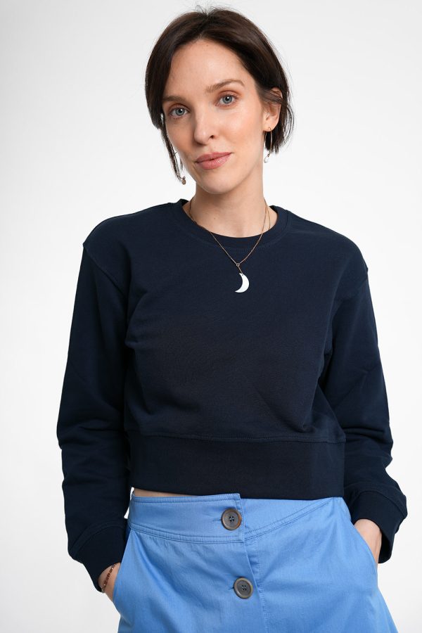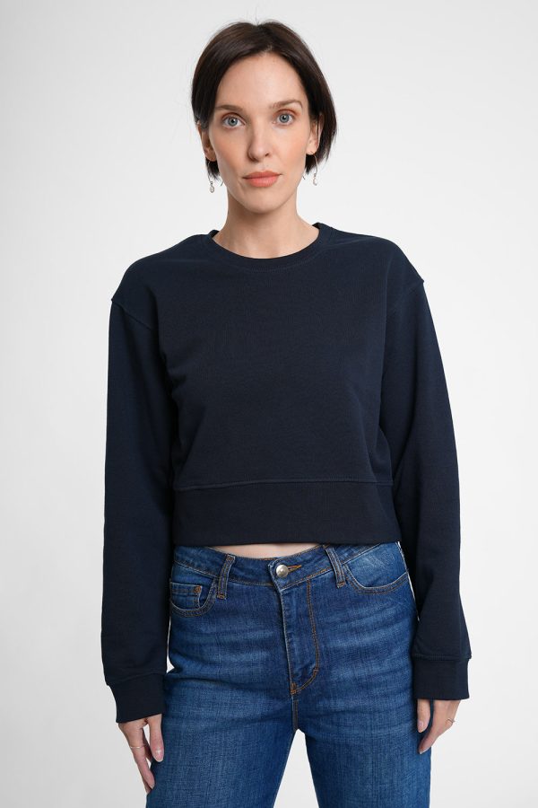 Kurzes Sweatshirt in Dunkelblau aus weichem Jersey mit breiten Bündchen.