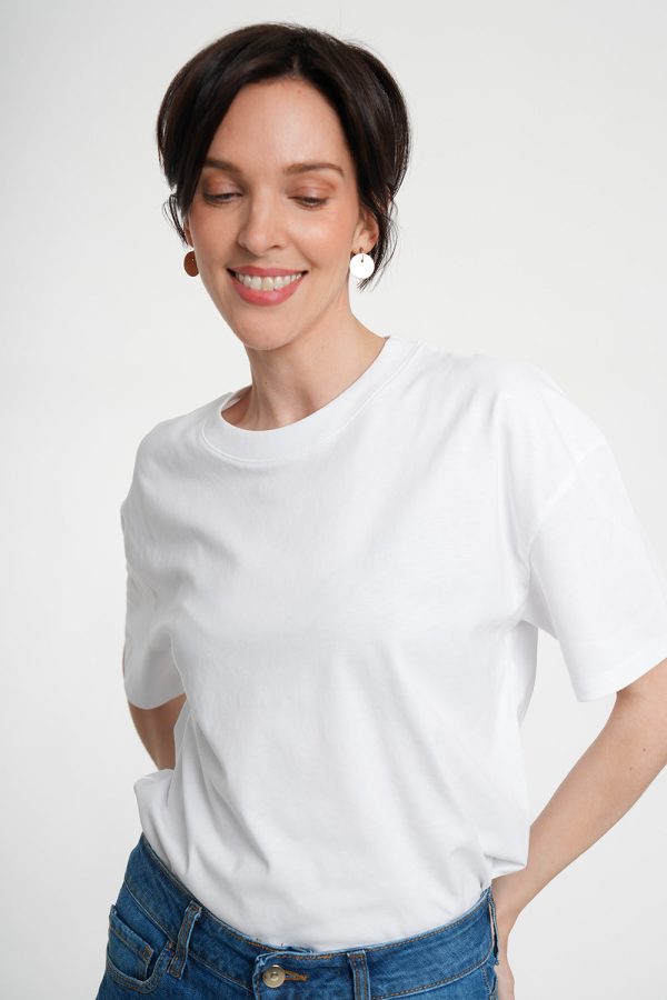 Halsnaher Rundhalsausschnitt mit breiter Rippenborte