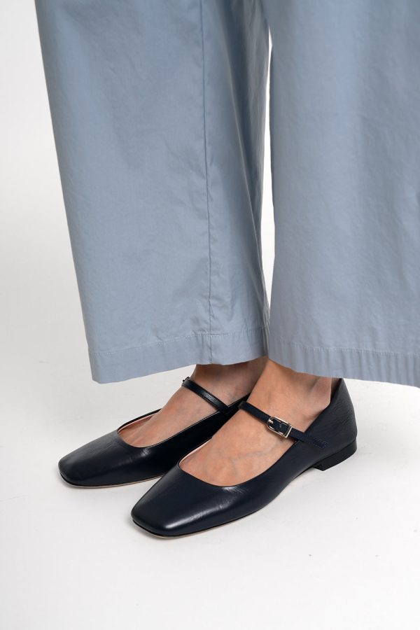 Moderner Mary-Jane Ballerina aus weichstem Nappaleder mit eckiger Zehenkappe.